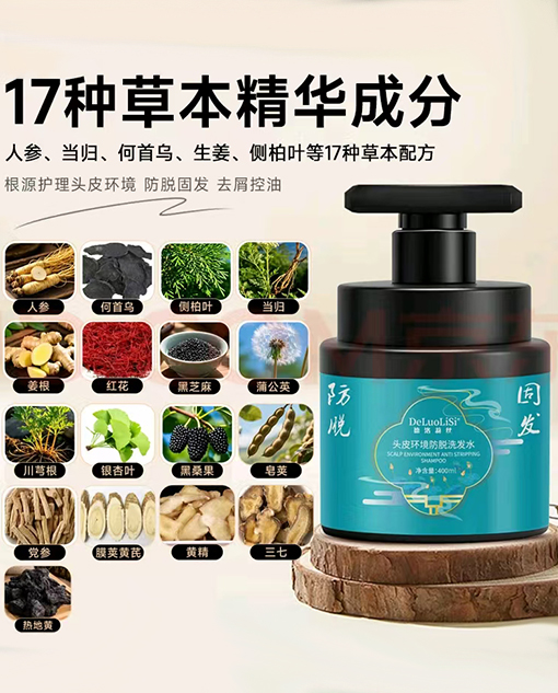 18 味名貴中草藥 + 梯田淘米水發酵提取物 + 黑紫靈芝多肽萃取精華,精準作用毛囊。